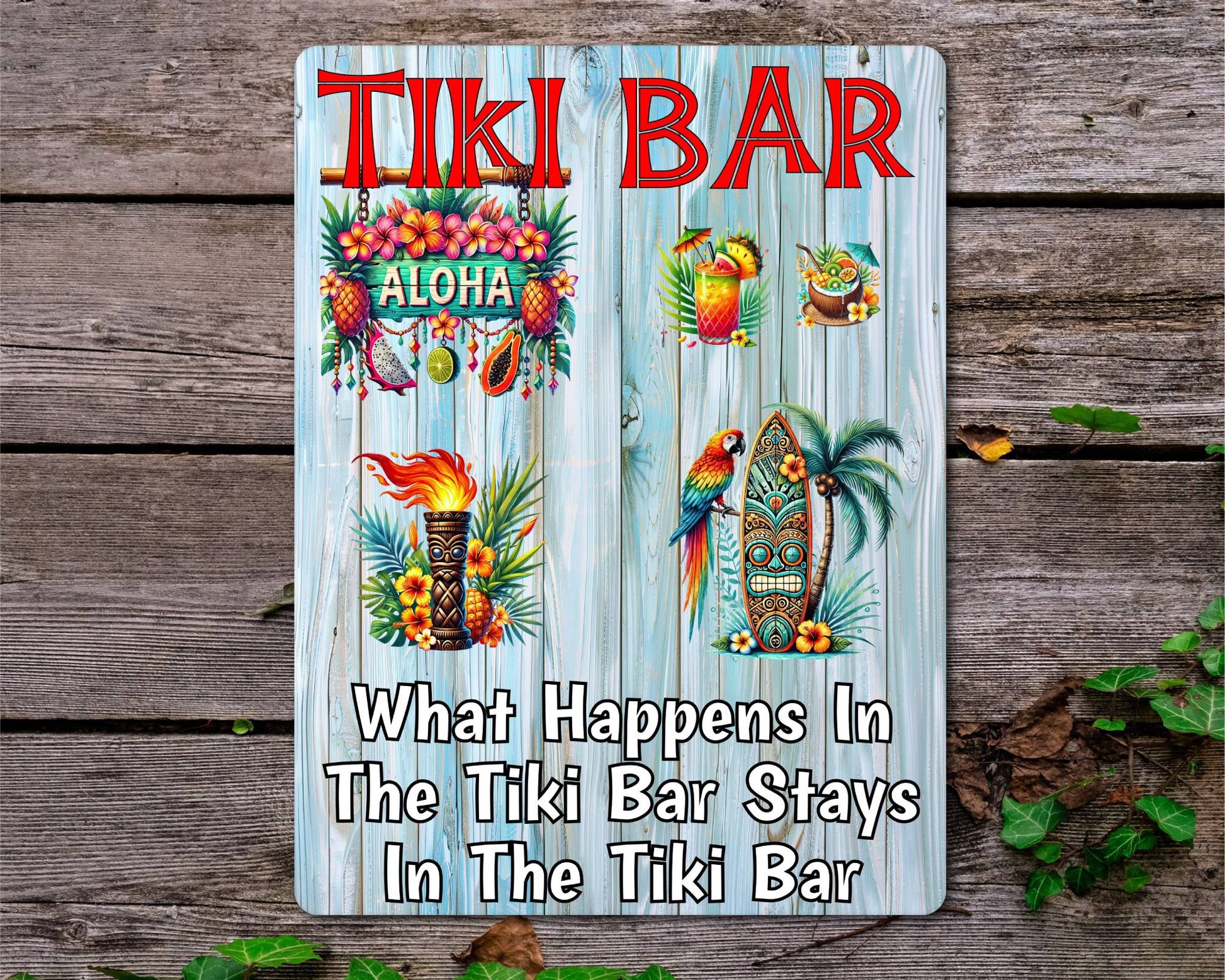 Alcohol Metal Sign Gift - What Happens In The Tiki Bar Stays In The Tiki Bar - Cute Fun Novelty Family Drink Aluminium Present