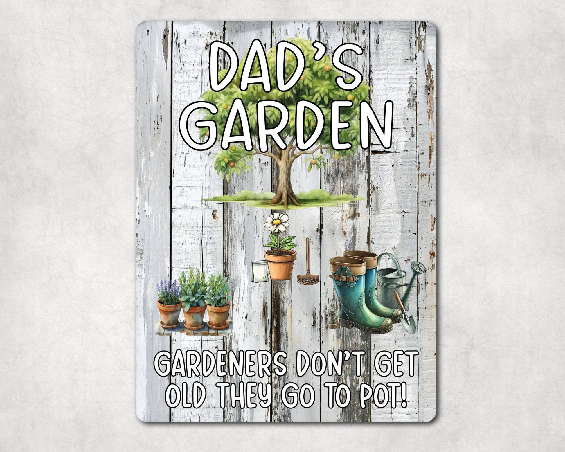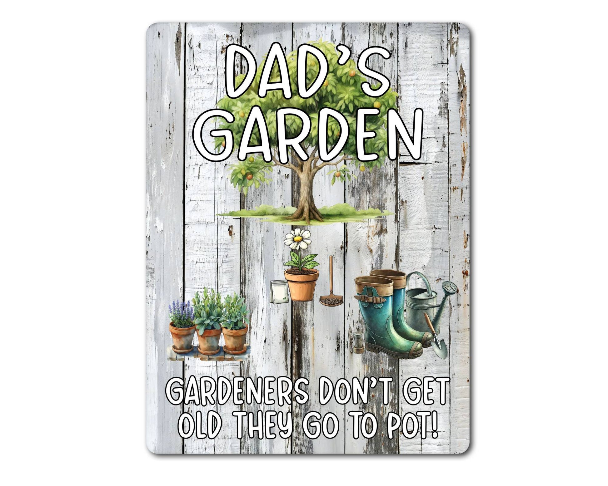 Allotment Metal Sign Gift -Dad's Garden - Gardeners Don't Get Old They Go To Pot - Cute Fun Novelty Family Aluminium Present