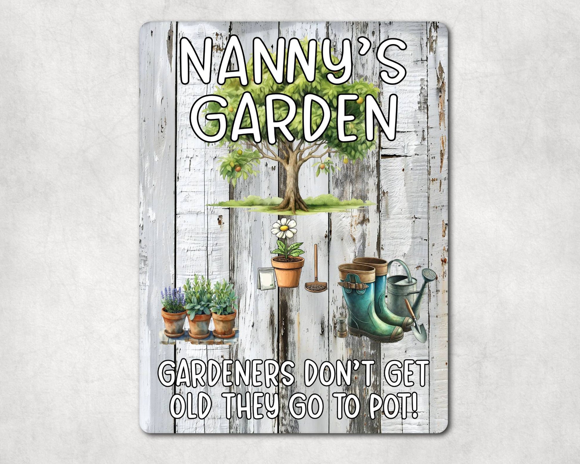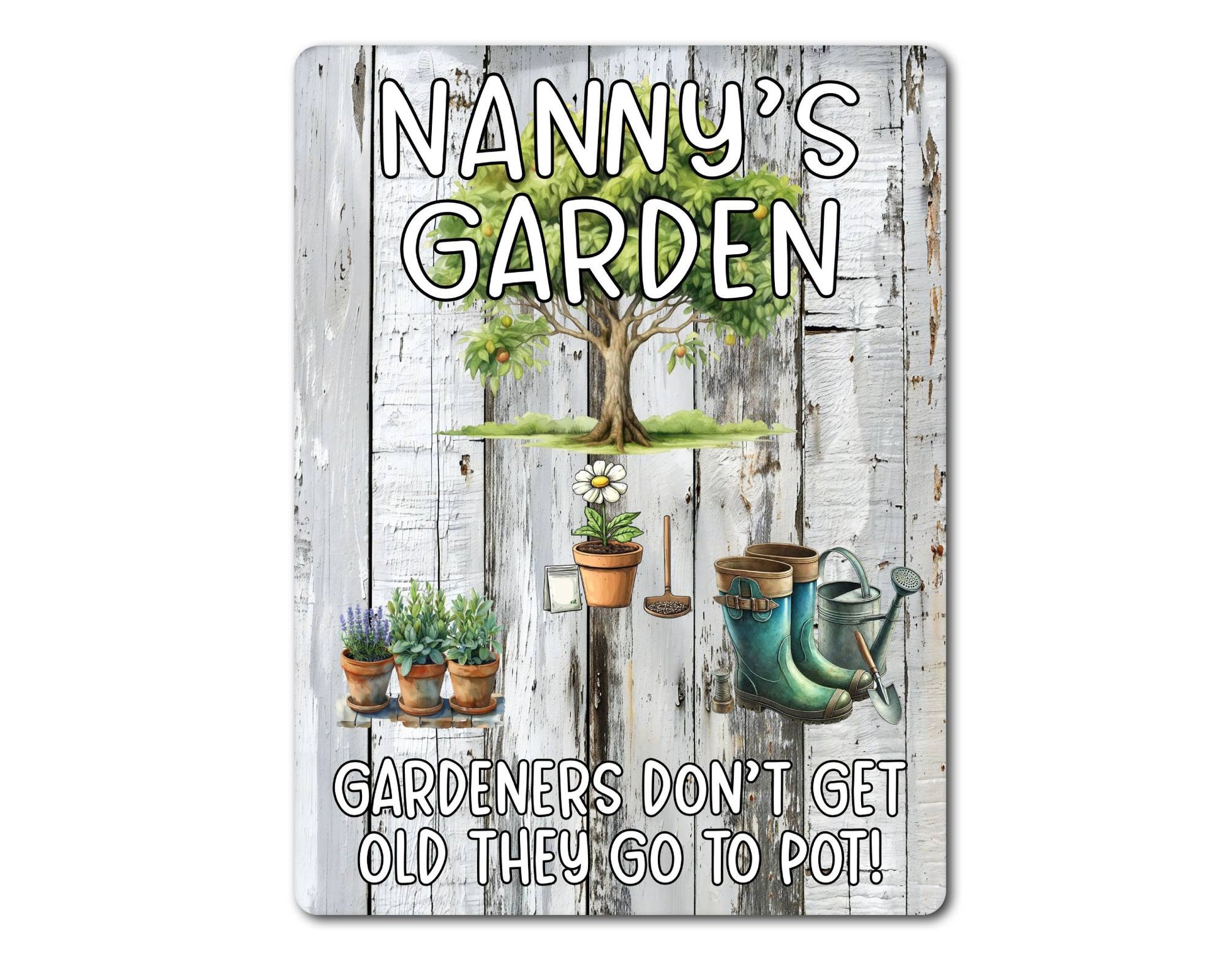 Allotment Metal Sign Gift - Nanny's Garden - Gardeners Don't Get Old They Go To Pot - Cute Fun Novelty Family Aluminium Present