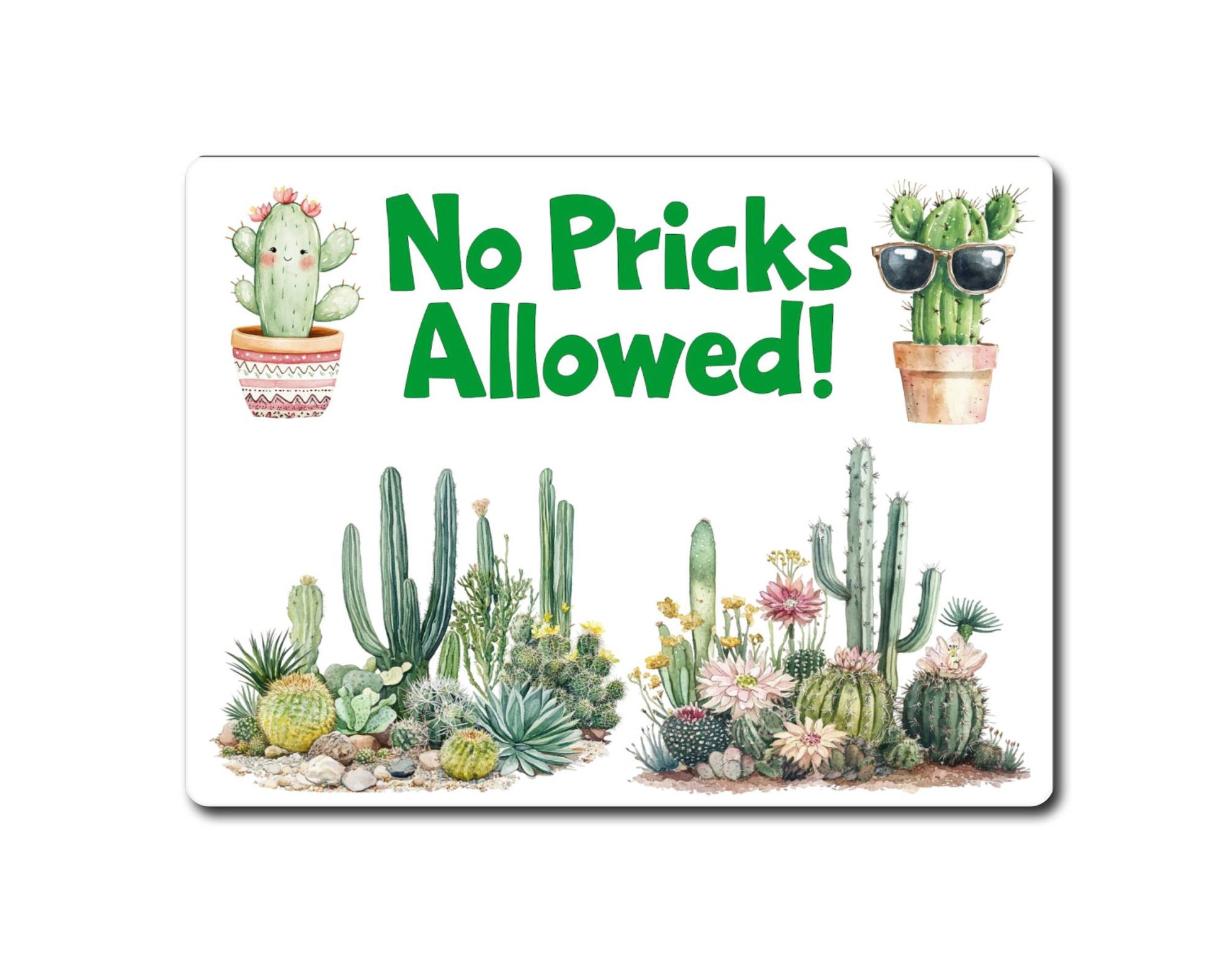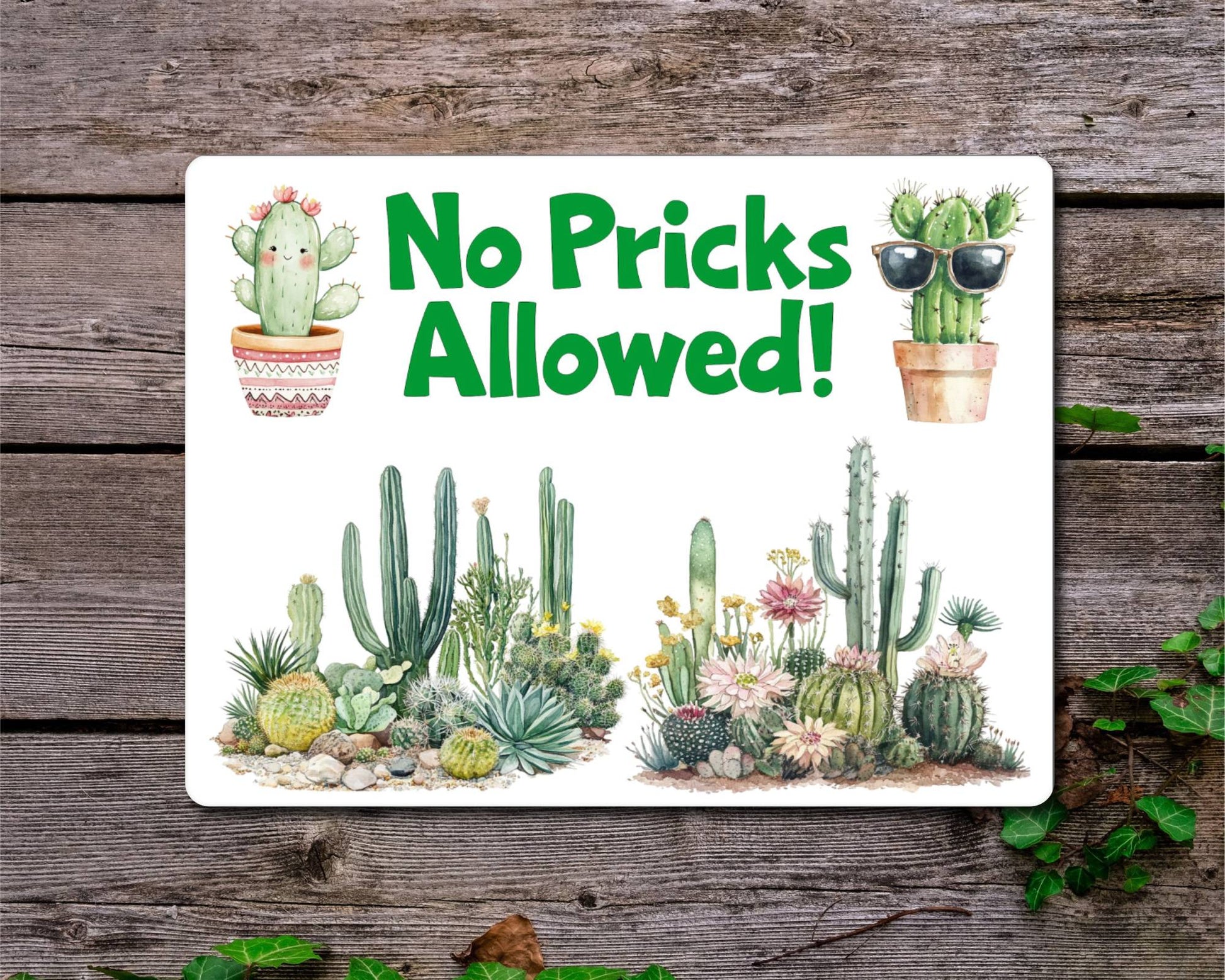 Allotment Metal Sign Gift - No Pricks Allowed - Cute Fun Novelty Family Garden Cactus Aluminium Present