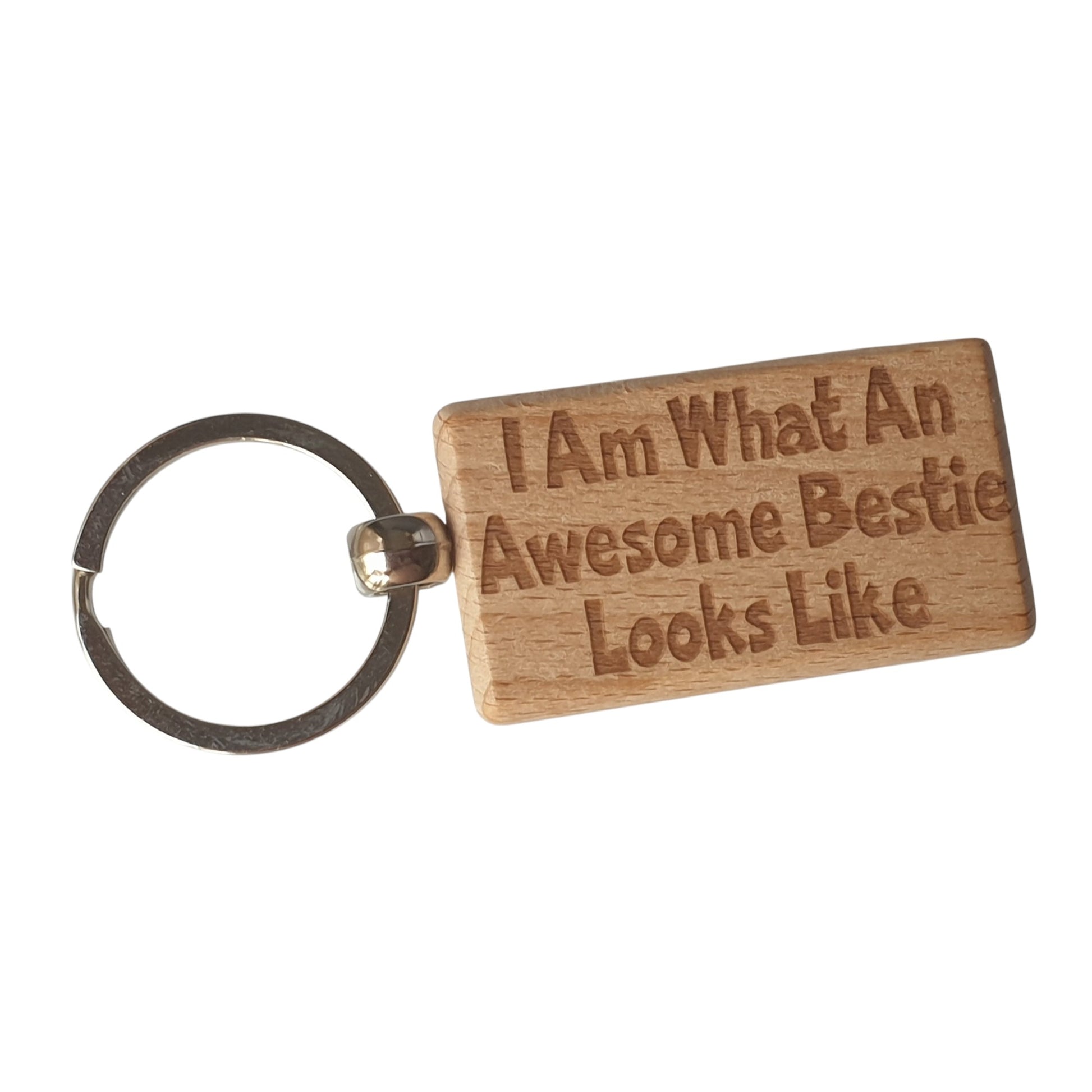 Best Friend Keyring Gift I Am What An Awesome Bestie Looks Like Engraved Wooden Key Fob Present