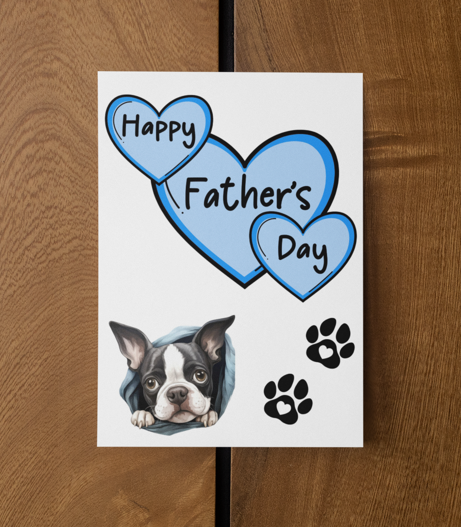 Boston Terrier Father's Day Card - Nice Cute Fun Pet Dog Puppy Owner Novelty Greeting Card