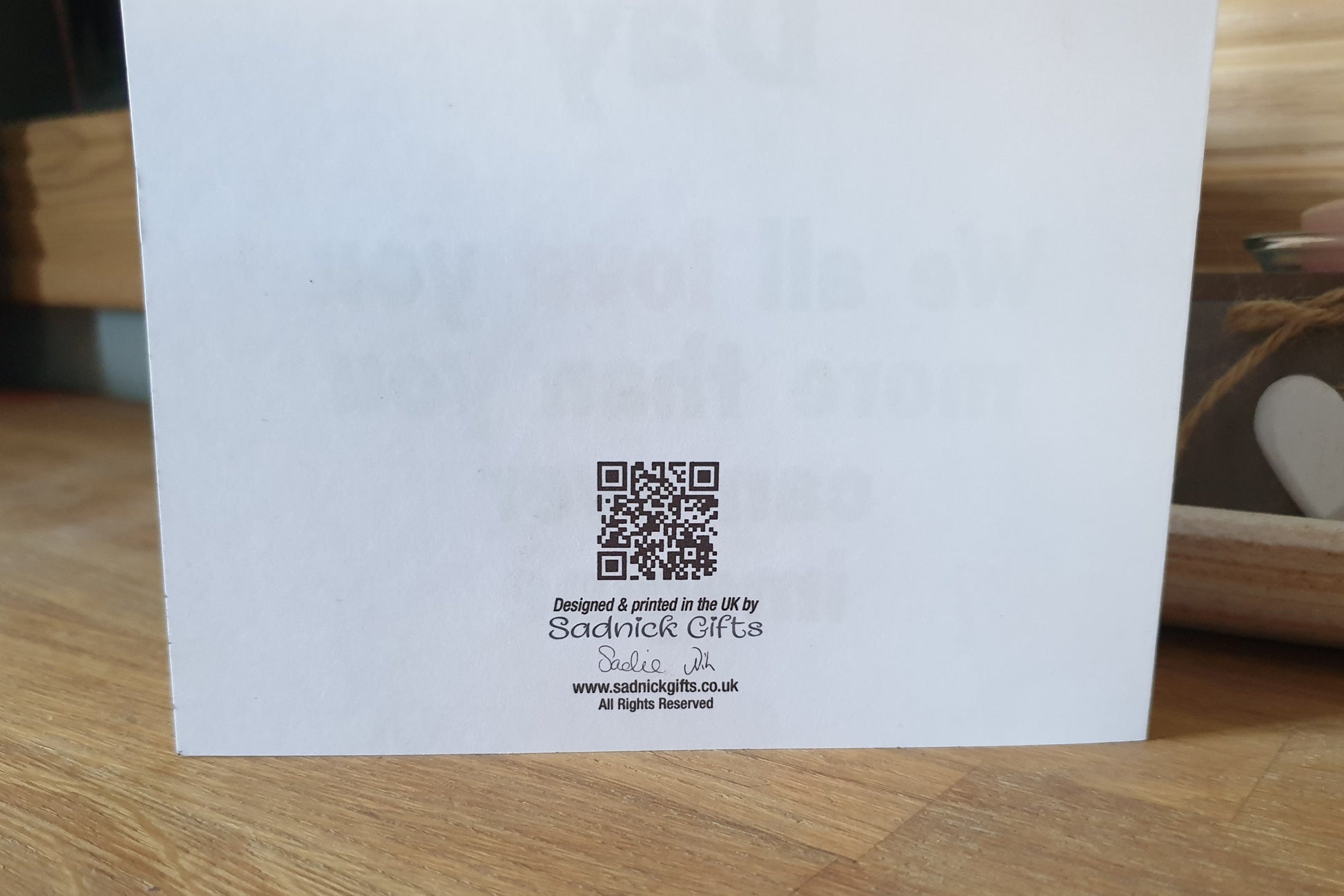 Our greeting cards are made of high quality 350gsm silk cardstock and are printed in-house by Sadnick Gifts.