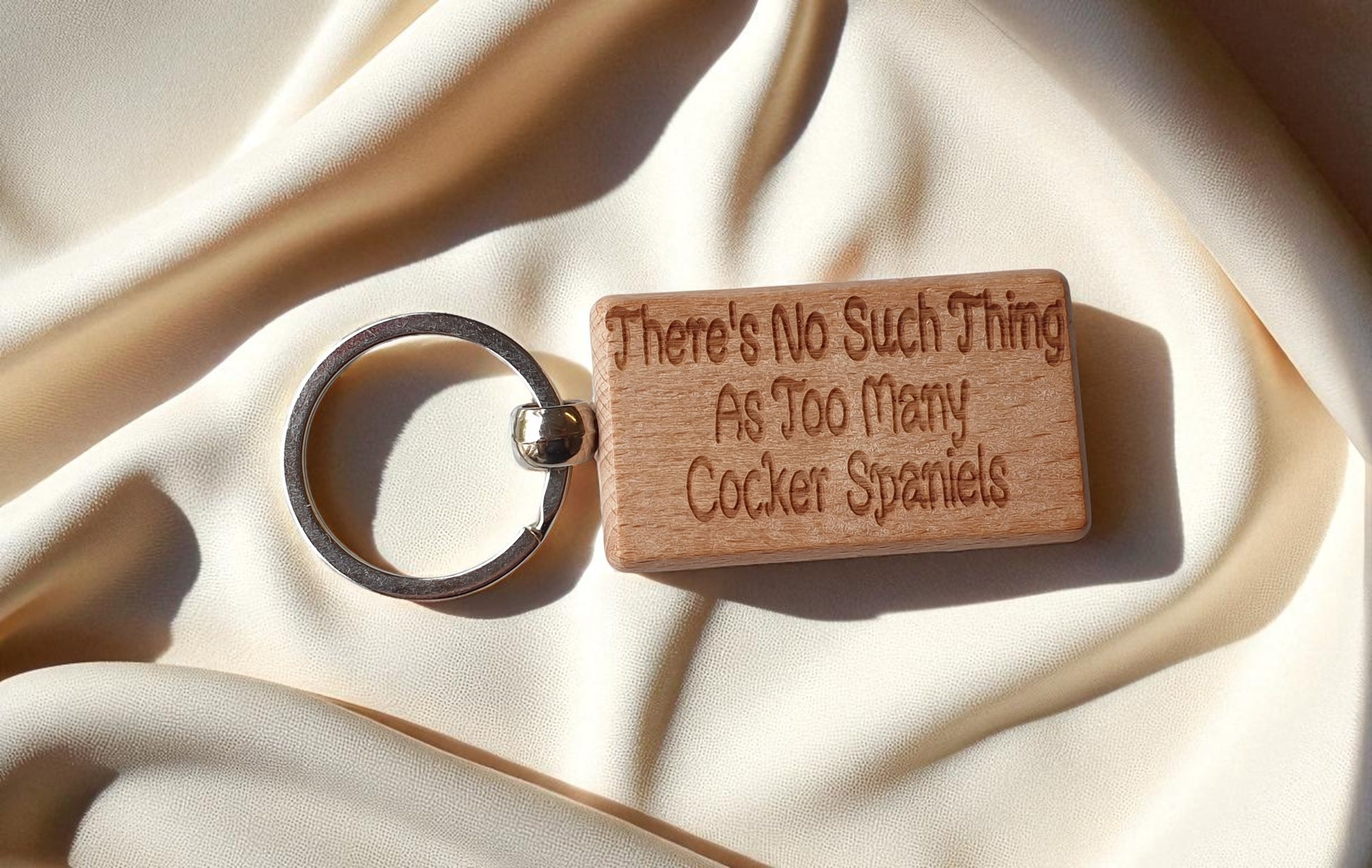 Cocker Spaniel Keyring Gift There's No Such Thing As Too Many Nice Cute Engraved Wooden Key Fob Novelty Dog Owner Present