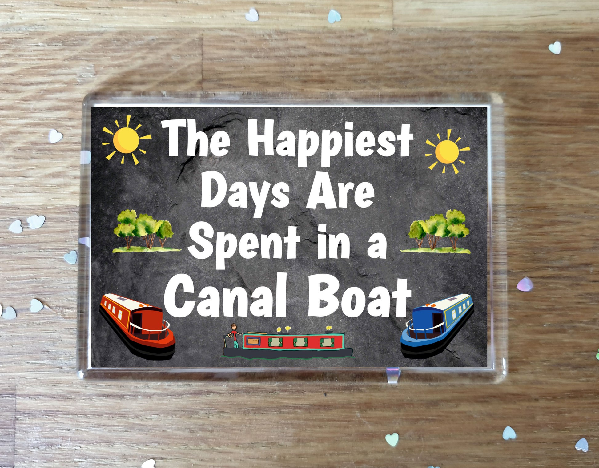 Fun Canal Boat Fridge Magnet - The Happiest Days Are Spent In A Canal Boat - Cheeky Birthday Gift - Novelty Present