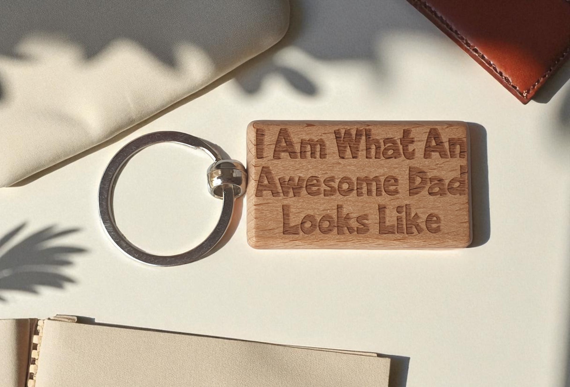 Dad Keyring Gift I Am What An Awesome Looks Like Engraved Wooden Key Fob Present