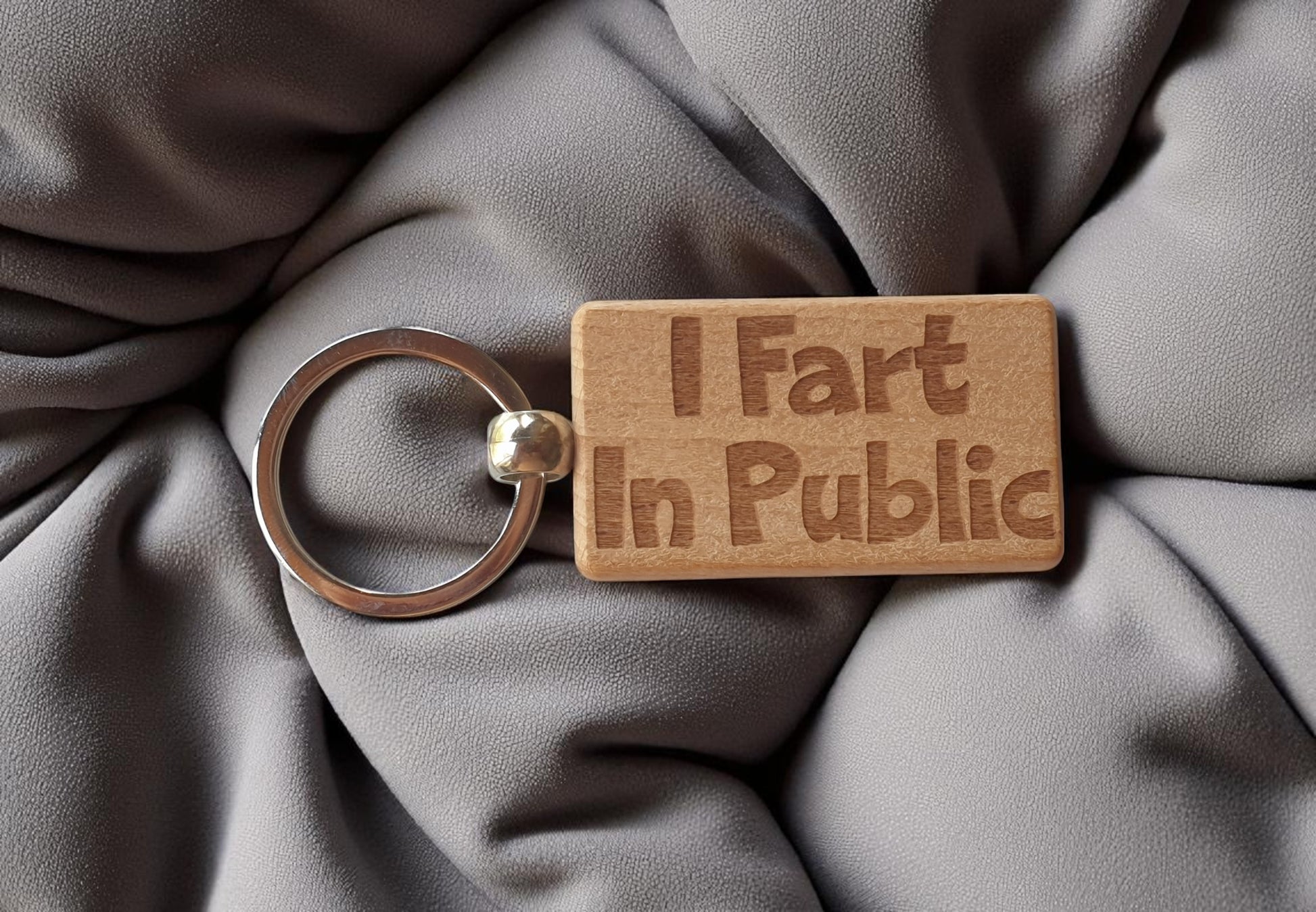 Funny Keyring Gift I Fart In Public Engraved Wooden Key Fob Fun Novelty Nice Cute Present