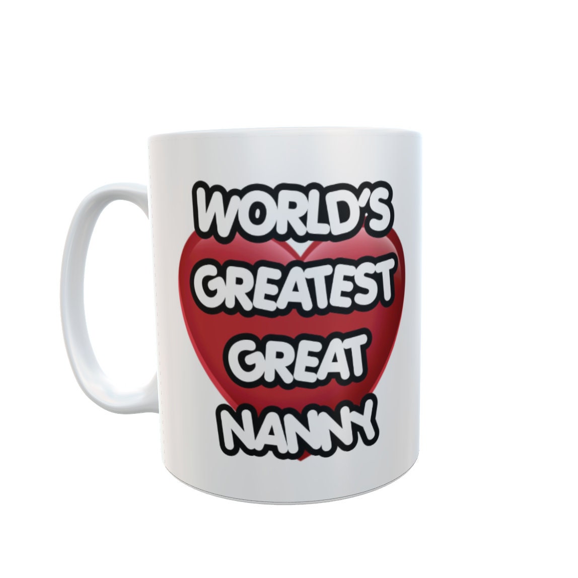 Great Nanny Mug Gift - World's Greatest Great Nanny - Nice Novelty Cute Red Heart Cup