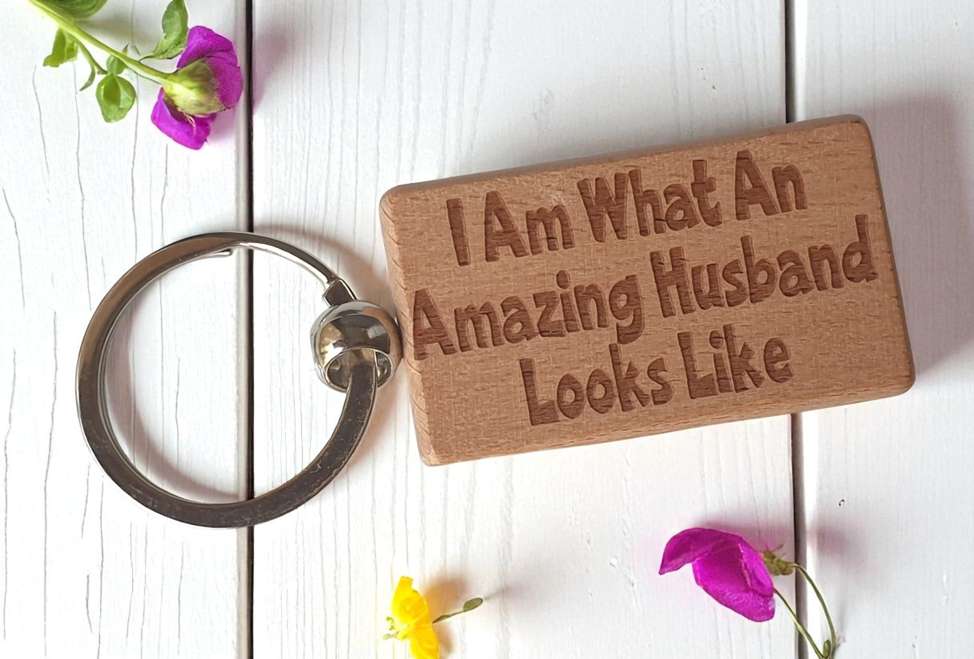 Husband Keyring Gift I Am What An Amazing Looks Like Engraved Wooden Key Fob Present