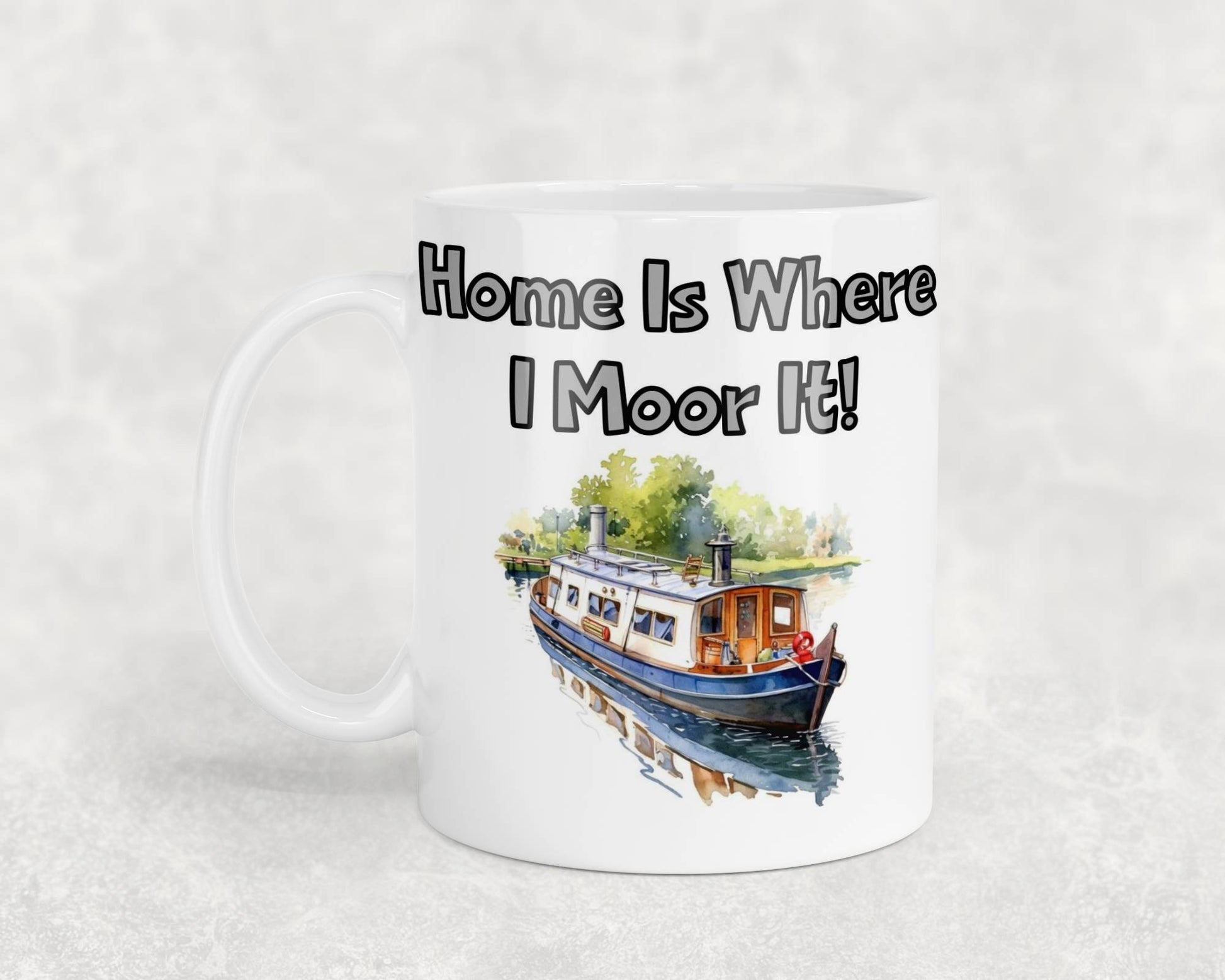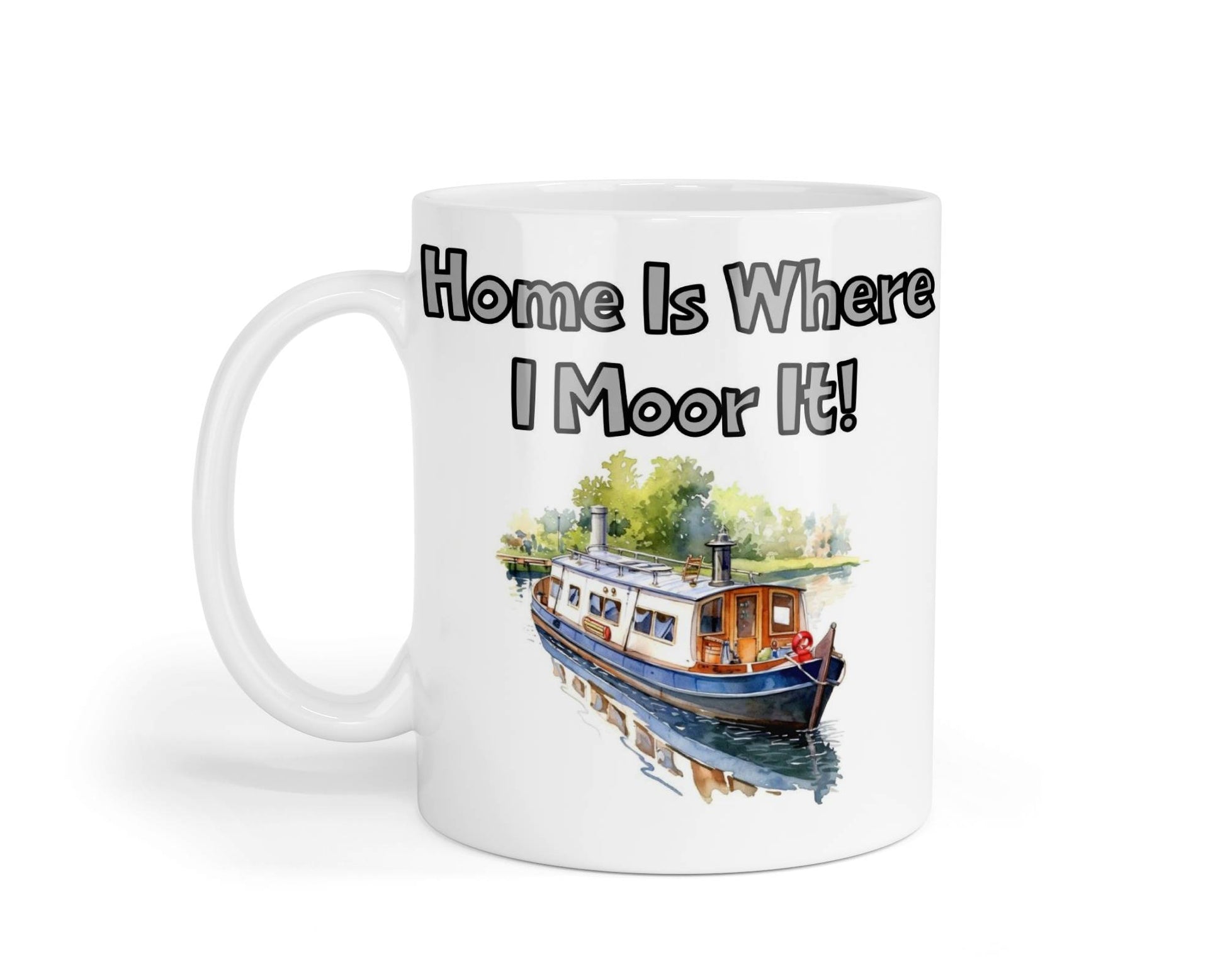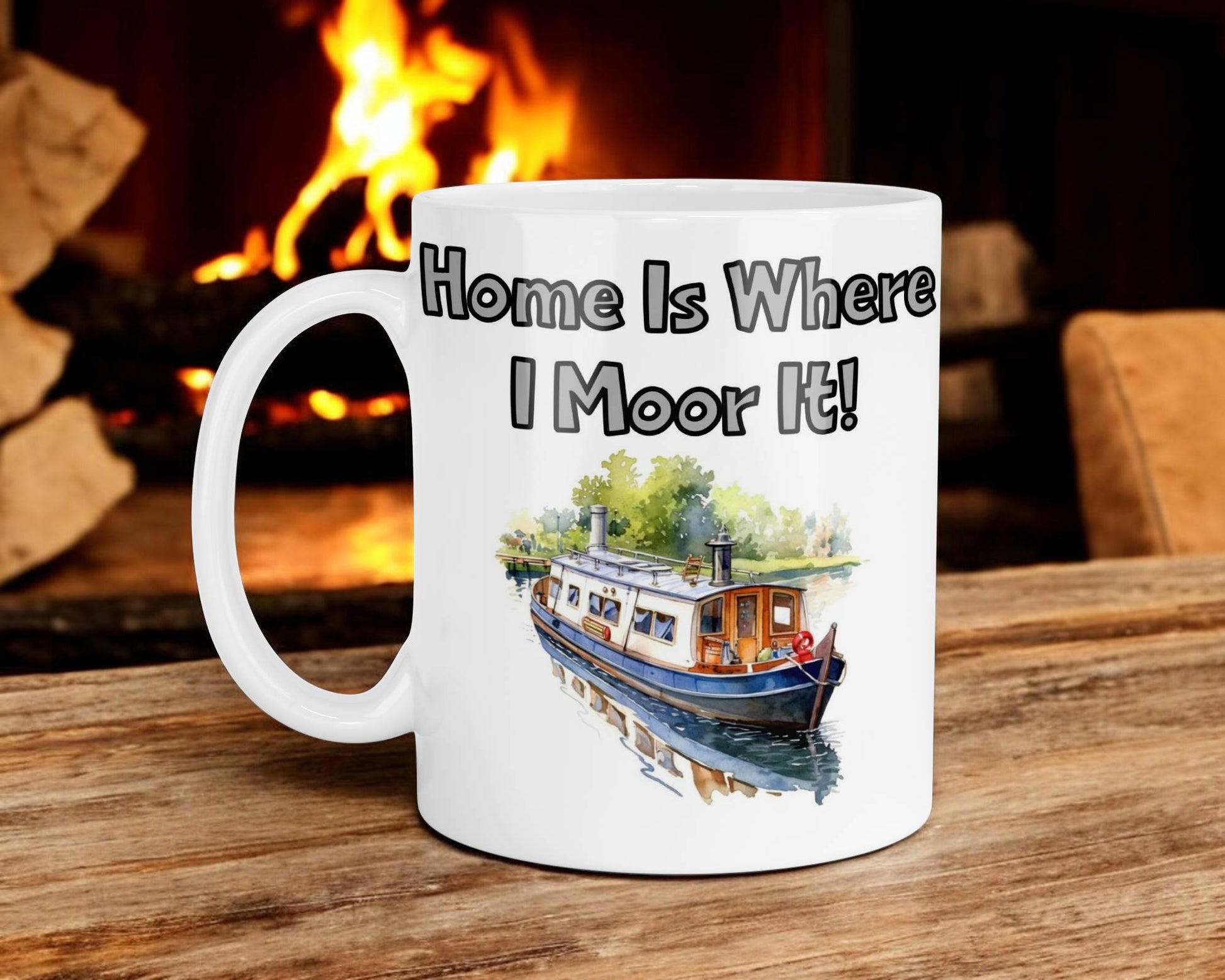 Narrowboat Mug Gift Home Is Where I Moor It Novelty Cute Canal Boat Funny Holiday Travel Boating Vacation Present
