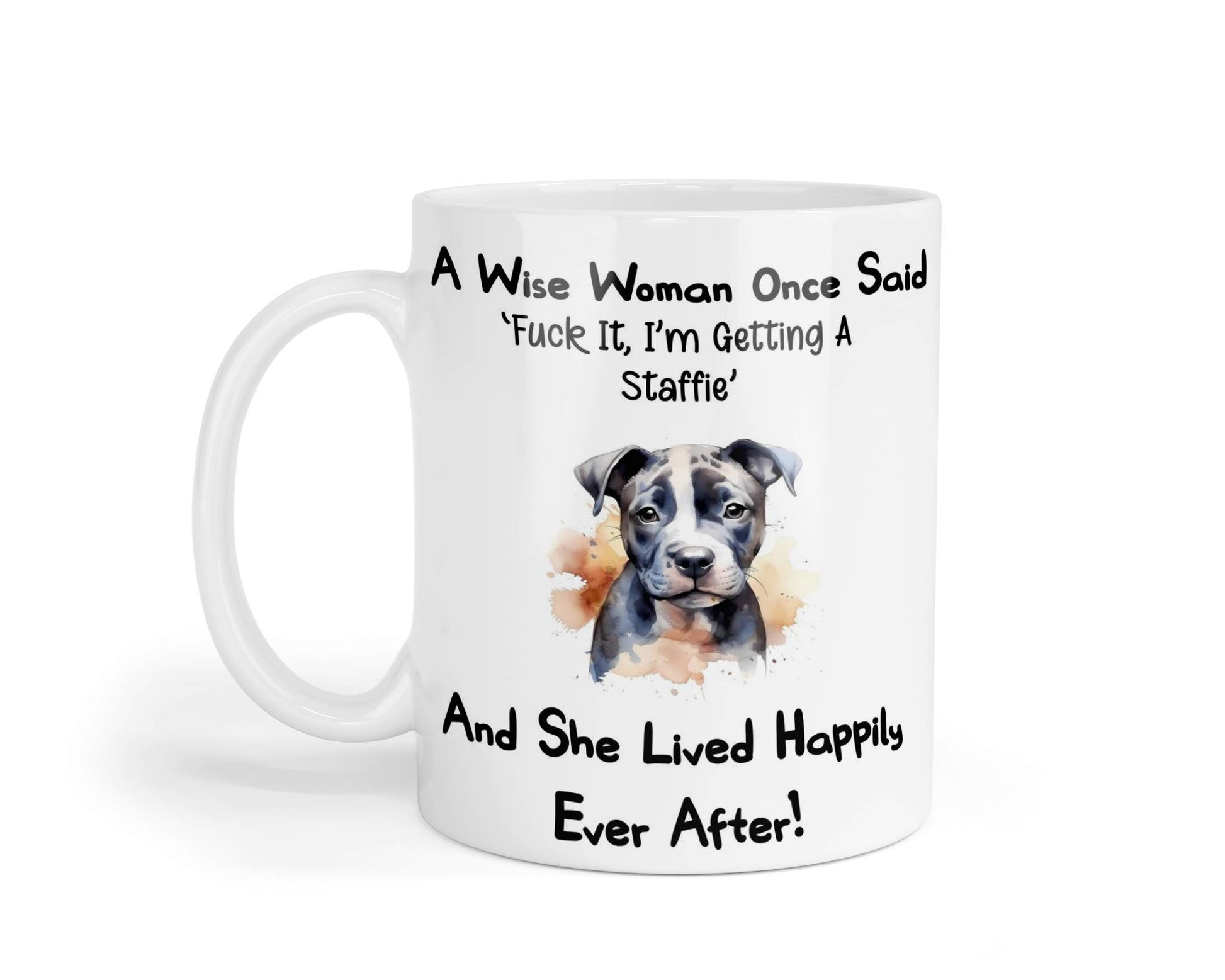 Staffie Mug Gift A Wise Woman Once Said Fuck It I'm Getting A Nice Cute Novelty Dog Owner Printed Cup Present