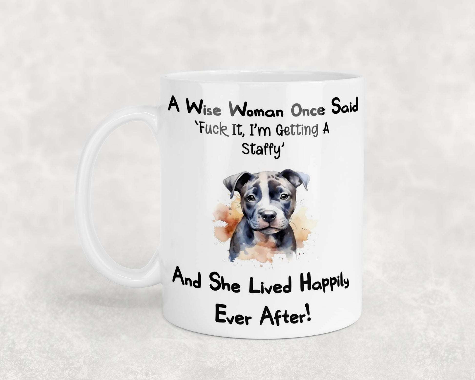 Staffy Mug Gift A Wise Woman Once Said Fuck It I'm Getting A Nice Cute Novelty Dog Owner Printed Cup Present