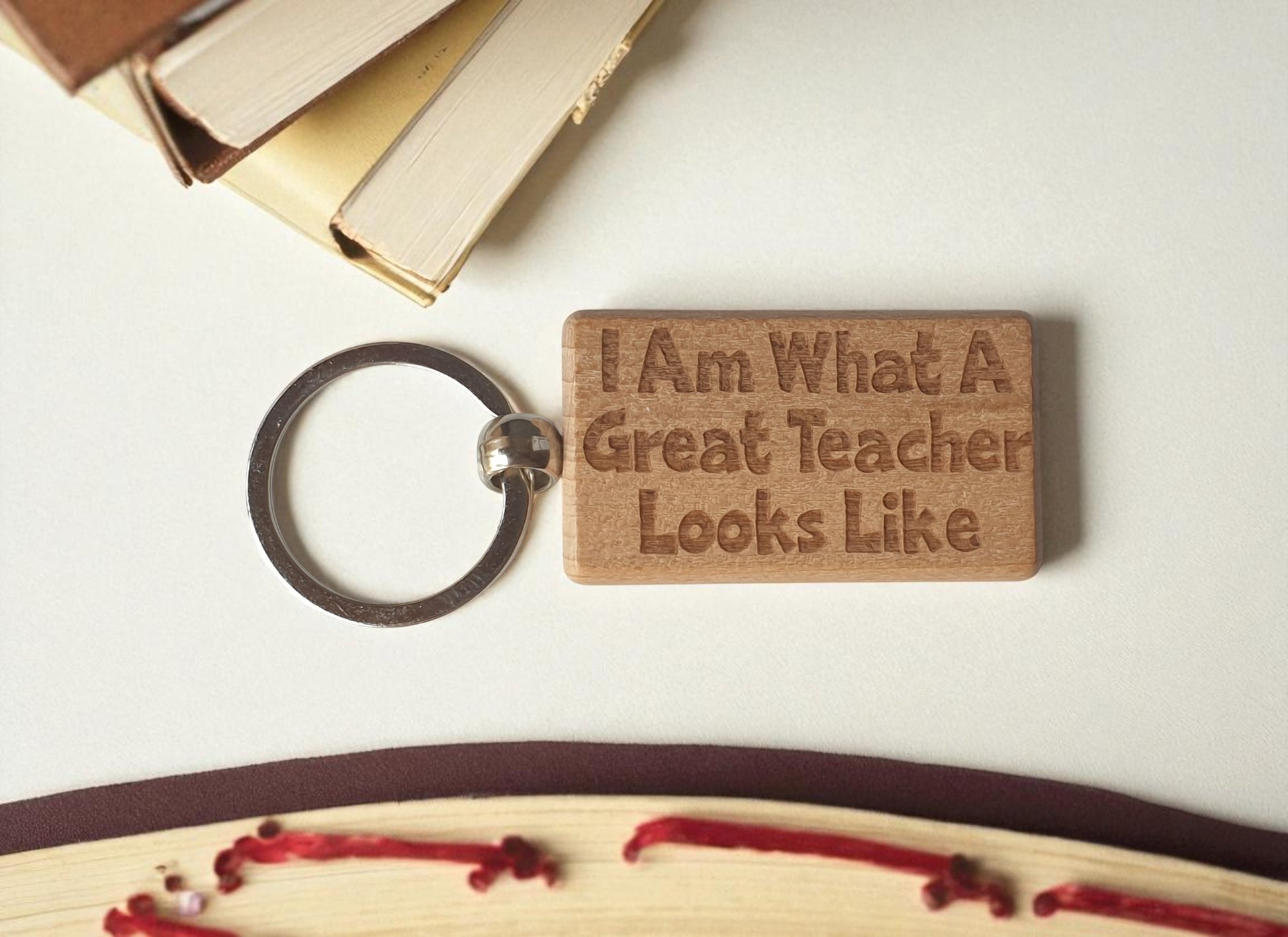 Teacher Keyring Gift I Am What A Great Looks Like Engraved Wooden Key Fob Present