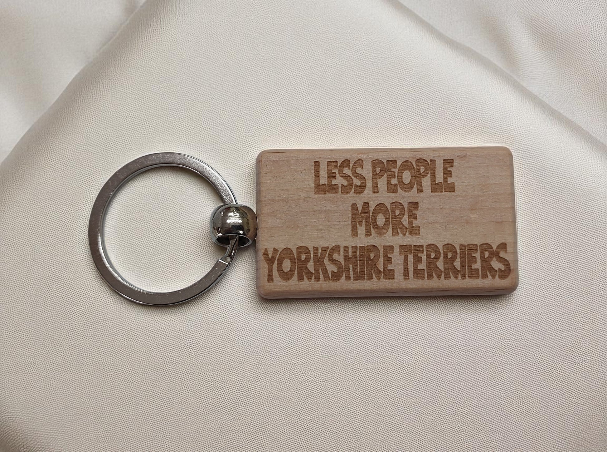 Yorkshire Terrier Keyring Gift Less People More Engraved Wooden Keychain Dog Owner Present